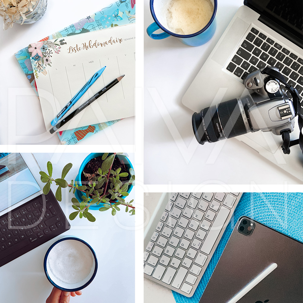 Minimalisme et créativité réunis : une collection de 4 photos flat lay hi-res au style épuré pour vos projets.